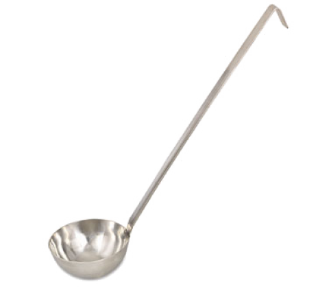 Ultra Ladle, 8 oz., 13-1/2"L handle, one-piece, standard hook handle, heavy-duty 18/8 stainless steel