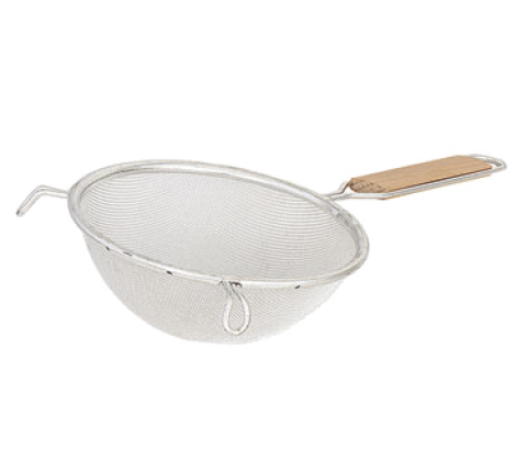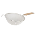 Strainer, 6-1/4" bowl, 6"L handle, pan hook & flat-bottom lacquered wood handle, rigid strainers are retinned, fine double mesh