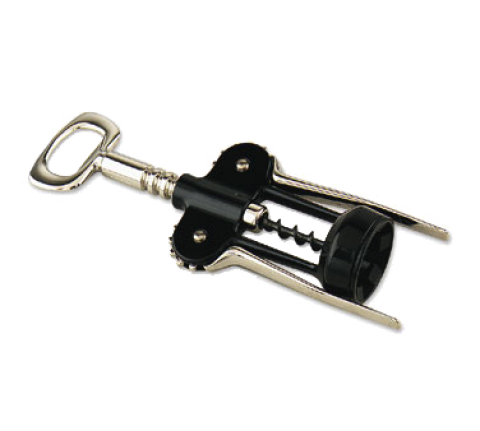 Corkscrew, 8-1/2"L, wing type, geared lever, stainless steel, plastic, black (individually boxed)
