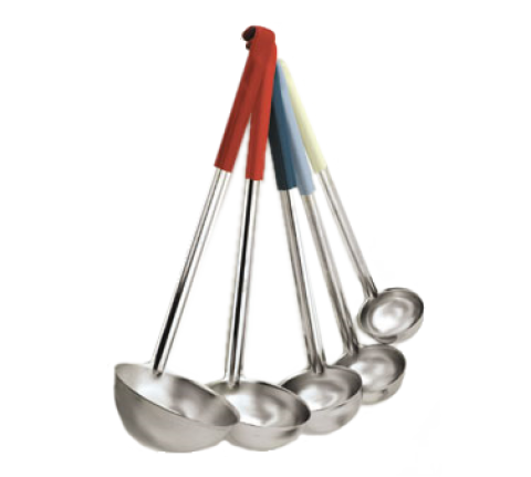 Optima® Ladle, 12 oz., 13"L grooved redhandle, one-piece, 18/8 stainless steel, mirror polished finish, red