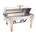 Sonata Serenade™ E™ Economy Chafing Dish, full size, 8 qt., 24-1/2" x 16-3/4" x 17-3/4", roll-top cover, dripless water pan, food pan, & two drop-in fuel holders, with gold accents, stainless steel, mirror finish