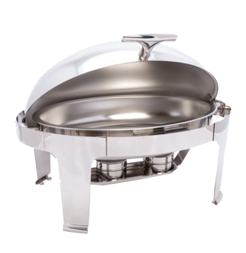 Sonata Serenade™ E™ Economy Chafing Dish, 9-1/2 qt., 25-3/4" x 19-3/4" x 18", oval, roll top cover, stackable frame, dripless water pan, food pan, & single drop-in fuel holder, stainless steel, mirror finish