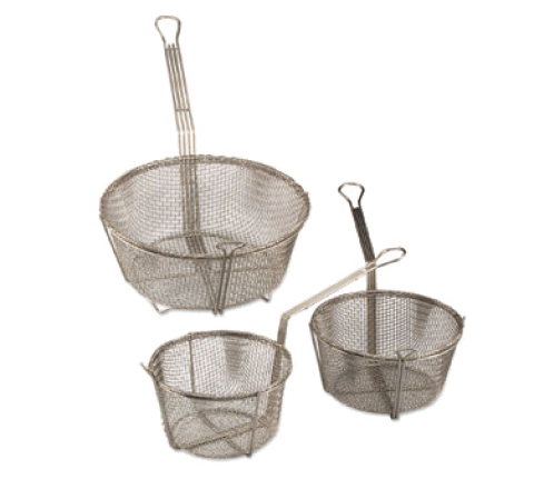 Optima ® Fry Basket, 13" dia., round, front hook, welded handle, wire mesh, nickel plated