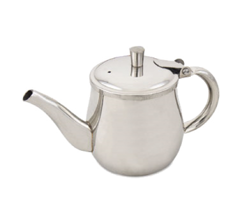 Teapot, gooseneck, 10 oz., 3-5/8" H, hinged lid, 18/8 stainless steel with heat insulated hollow handle