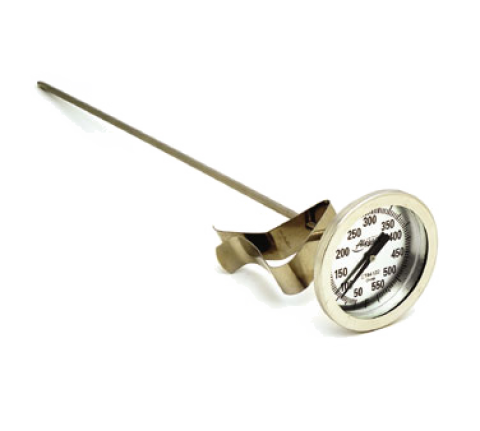 Thermometer, candy/fry, 2-1/8" dial, 12" stem, temperature range 50 to 550° F, adjustable pan clip and quick reference guide