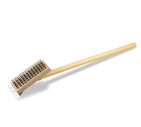 Grill Brush with Scraper, 7-1/2" x 3" block, 27" handle parallel to brush, firm steel wire bristles