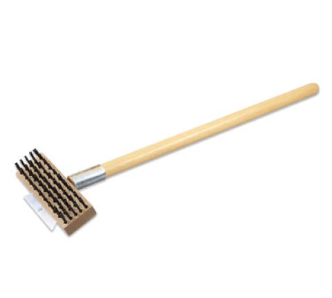 Grill/Oven Brush with Scraper, 7-1/2" x 3" block, 27" handle perpendicular to brush, firm steel wire bristles