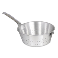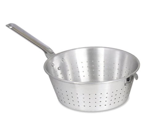 Strainer, 10-1/4" dia. x 4" deep, round, grooved riveted handle, dent-resistant, pan hook, aluminum