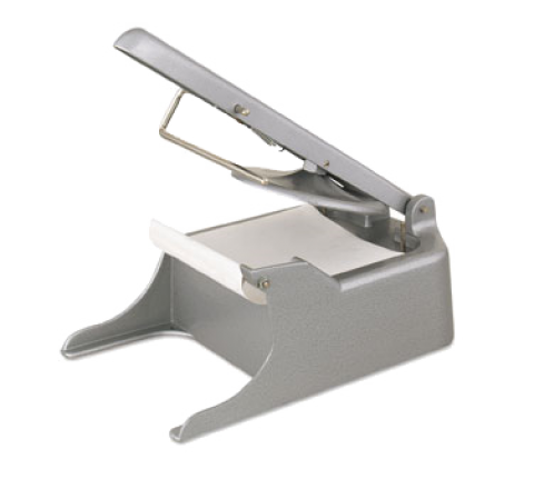 Patty Molding Machine, 6-9 patties per lb., 12-1/4" x 7-3/4" x 5-1/2", forms and ejects wax-sheeted patty, holds up to 100 sheets, mold and knockout discs are interchangeable, die-cast aluminum, polished finish