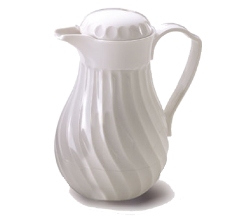 Pitcher, 40 oz., 9-1/2"H, insulated, push button, porcelain-look exterior with swirl pattern, polycarbonate liner, white