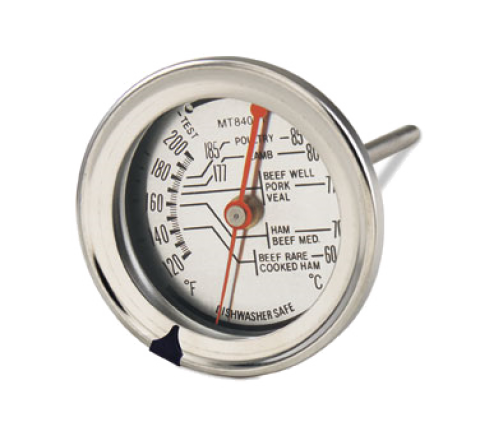 Meat Thermometer, 2-3/8" dial, 5" stem, temperature range 120 to 220° F (60 to 85 degrees C), dishwasher safe, blister carded