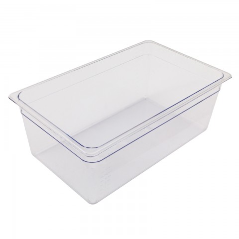 E™ Economy Food Pan, 27 qt., 20-7/8" x 12-3/4" x 8", rectangular, -40° to 210°F (-40° to 99°) temperature range, stackable, dishwasher safe, polycarbonate, clear, NSF
