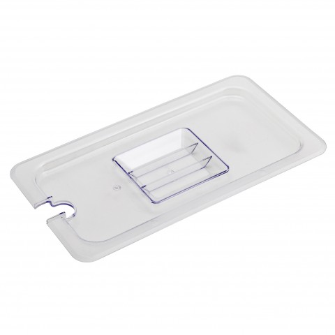 E™ Economy Food Pan Cover, 1/3 size, 12-3/4" x 6-7/8", notched, rectangular, dishwasher safe, polycarbonate, clear, NSF