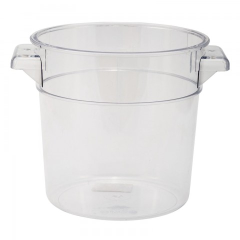 E™ Economy Storage Container, 1 qt., 5-1/4" dia. x 5" deep, round, stackable, -40° to 210°F (-40° to 99°C) temperature range, dishwasher safe, polycarbonate, clear, NSF