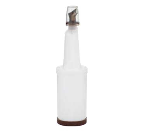 Pourer, 32 oz. (1 qt.), brown free-flow spout & base, protective cap, polyethylene, frosted body