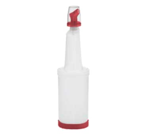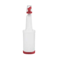 Pourer, 32 oz. (1 qt.), red free-flow spout & base, protective cap, polyethylene, frosted body