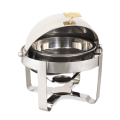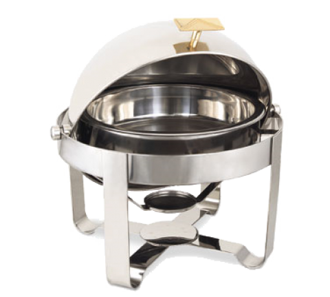Sonata Serenade™ Chafing Dish, 16" dia. x 17" H, roll top dome cover, welded frame with built-in handles, dripless water pan, food pan, & single drop-in fuel holder, brass trim, stainless steel, mirror finish