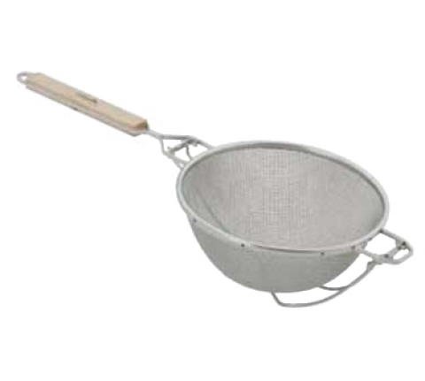 E™ Economy Strainer, 10-1/4" bowl, 9" overall length, reinforcing bands, flat-bottom wood handle, stainless steel, double mesh