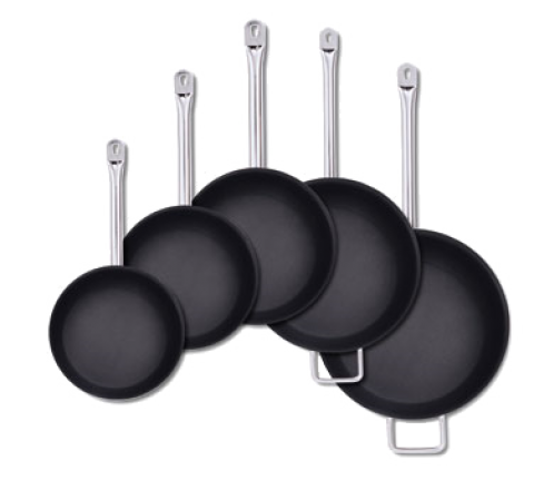 Optima® Induction Fry Pan, 8" dia. (top) x 1-3/4" deep, round, without cover, handles, corrosion resistant, aluminum & 18/0 stainless steel sandwiched bottom, 18/8 stainless steel with Teflon® Xtra finish, NSF