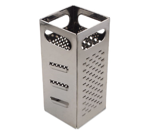 Grater, 9" H, square, four different grating surfaces, fine to coarse, stainless steel