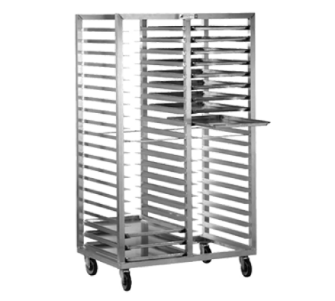 Bun Pan Rack, Mobile, heavy duty, 72"H, open sides, double capacity racks, 3" slide spacing, capacity (40) 18" x 26" bun pans, all welded aluminum construction, end loading, 5" dia. swivel casters, 2000 lb. load capacity, shipped fully assembled, NSF