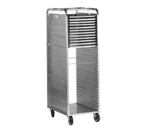 Refrigerator Rack, Mobile, 61"H x 26" x 20-1/4", solid sides & bottom, 1-1/2" slide spacing, capacity (32) 18" x 26" bun pans, square aluminum uprights, welded extruded aluminum construction, end loading, 5" dia. non-marking swivel casters, shipped fully assembled, NSF