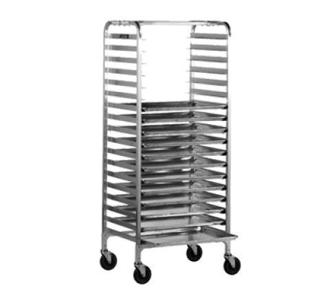 Bun Pan Rack, Mobile, 68"H, open sides, 5" slide spacing, capacity (11) 18" x 26" bun pans, riveted extruded aluminum construction, side loading, 5" dia. swivel casters, NSF