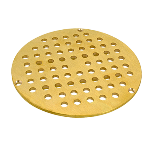 Grate, 8" drain size, 7-7/16" OD, 6-1/16" screw centers, brass with brass screws, for Smith Floor Drains