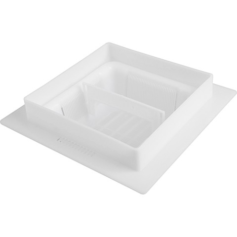 Basket, 8-1/2" square, 4 way drainage, with handle & 12" flange adaptor, for floor sink, plastic, white