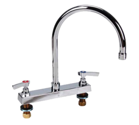 Faucet, deck mount, 8" centers, 8-1/2" gooseneck spout, 2" shanks