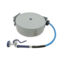 Retractable Hose Reel, covered reel with 30' hose, 3/8" NPT female inlet, 5-1/2" x 6-7/16" mounting plate, spray valve, 14-1/4" reel dia., 15-1/2" projection, T&S Brass