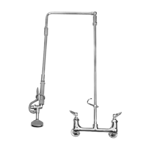 Pre-Rinse, wall mount, swivel arm, 8" centers, 34" H, 1.42 gpm, includes ring, washers, finger hook, spray valve, & base, chrome-plated brass, lead free
