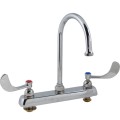 Deck Mount Workboard Faucet, 4Wrist Action, Material: Brass, Includes: 110-1155 Base Deck | 111-1030 Wrist Blade Handle, | 111-1173 Cold Button | 111-1174 Hot Button | 111-1210, Spout, Plating: Chrome-Plated, Inlet: 1/2" Nps, Lead Free: Y, Centers: 8",