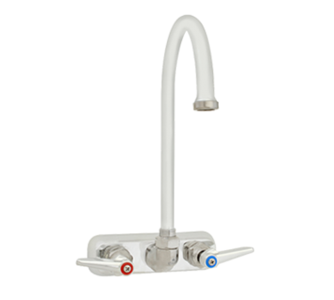 Faucet, wall mount, 6" swivel gooseneck spout, 3-1/2" center, chrome-plated brass, lead free, 1/2" NPT