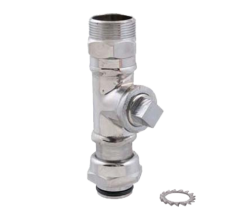 Swivel Tee, 4-1/8"L, 1-20 thread, 3/8" NPT, star washer, chrome-plated, brass