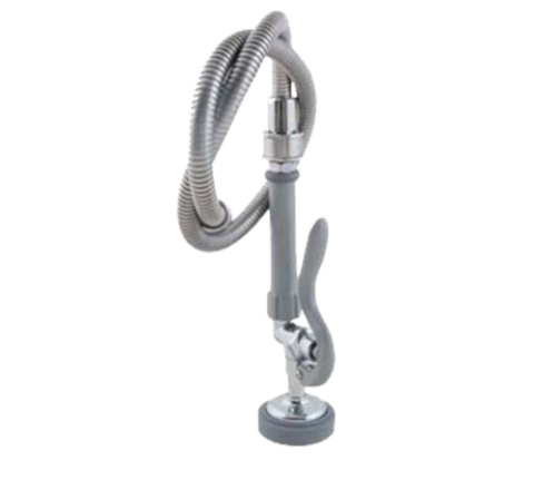 Pre-Rinse Swivel Hose & Spray Valve Assembly, 44"L hose, 1.42 gpm, includes hold down ring, gray handle, hose adaptor, washer spray valve & steel flex hose, chrome-plated brass, lead free