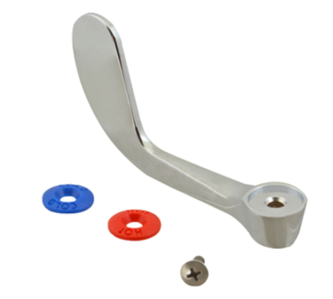 Wrist Blade, 4", for Fisher faucets, includes hot & cold index buttons & screw, chrome-plated brass, ADA