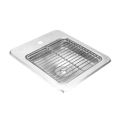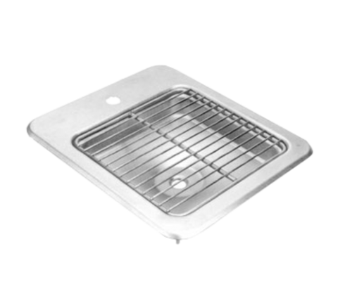 Water Station, 12"W x 14"D, 8-3/4" x 8-3/4" x 3" deep drainage area with grid, drainage area is 2" from riser hole, 7/8" dia. hole for glass filler shank, 1/2" NPS drain, stainless steel