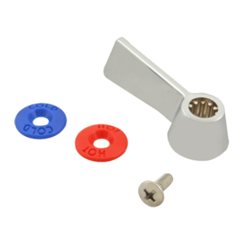 Handle, for Fisher faucets, includes hot & cold indes buttons & screw, chrome-plated brass