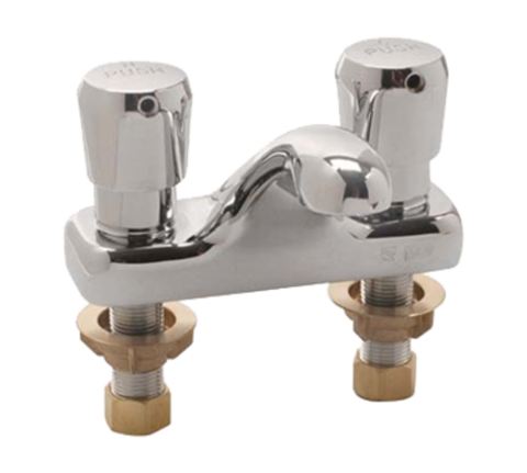 Faucet Metering Lavatory, deck mount, 4" center, 2-1/4" shanks, 1 gpm aerator, includes inlet adaptor nuts, chrome-plated brass, lead free