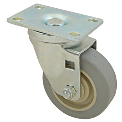 Caster, swivel plate, medium duty, 1-1/4"W, 3-1/2" dia., Ball Bearing, gray rubber wheel with plastic hub