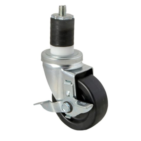 Caster, swivel stem, medium duty, 3-1/2" dia., for 1-5/8" OD tubing with brake, black rubber wheel