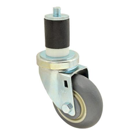 Caster, swivel stem, medium duty, 3-1/2" dia., for 1-5/8" OD tubing without brake, gray rubber wheel with metal hub