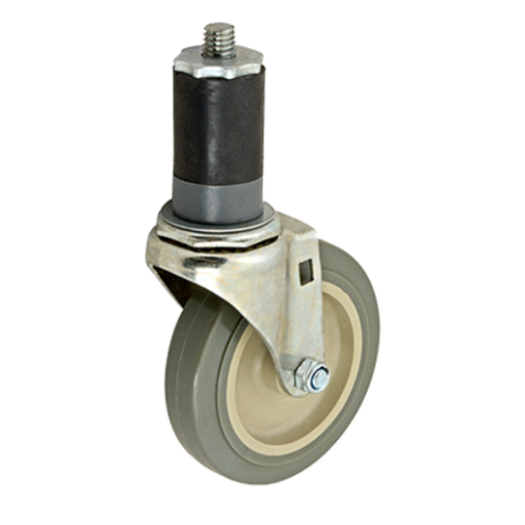 Caster, swivel stem, standard duty, 15/16"W, 4" dia., Ball Bearing, swivel, for 1-1/4" pipe without brake, gray wheel with plastic hub (caster for 1-1/4" pipe can be used for 1-1/2" OD tubing)