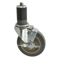 Caster, swivel stem, standard duty, 15/16"W, 4" dia., Ball Bearing, swivel, for 1-1/4" pipe with brake, gray rubber tire with plastic hub (caster for 1-1/4" pipe can be used for 1-1/2" OD tubing)