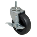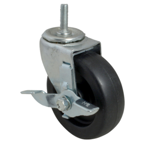 Caster, 4", swivel with brake, 1-1/4" stem, 3/8" - 16 thread, 250 lb. capacity, polyolefin wheel