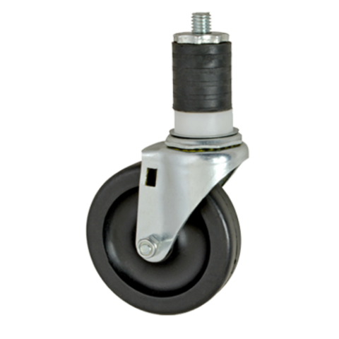 Caster, swivel stem, standard duty, 15/16"W, 4" dia., Ball Bearing, swivel, for 1-5/8" OD tubing without brake, black rubber tire with plastic hub