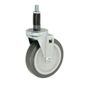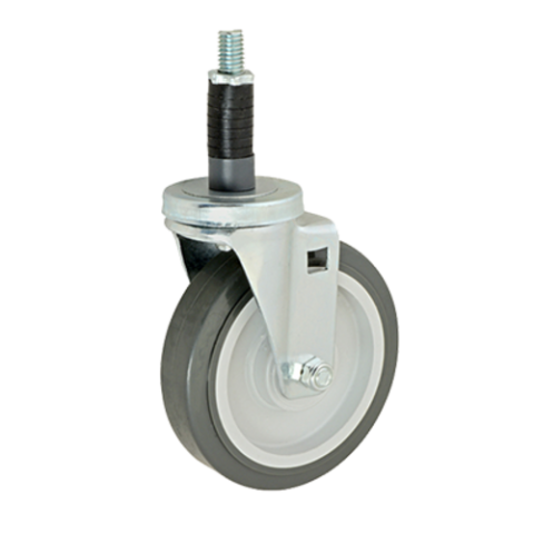 Caster, swivel stem, medium duty, 1-1/4"W, 5" dia., Ball Bearing, swivel, for 1" OD tubing without brake, non-marking gray rubber wheel with plastic hub