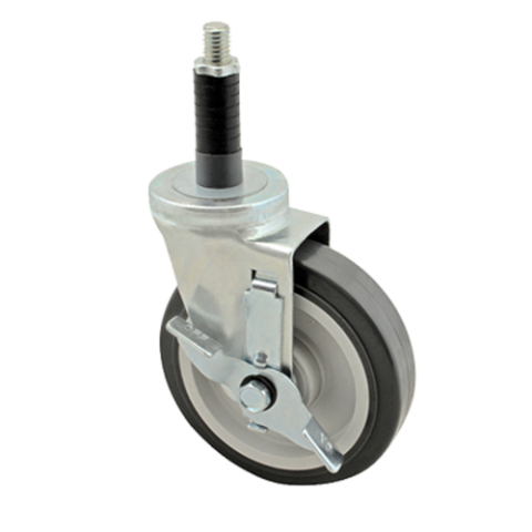Caster, swivel stem, medium duty, 1-1/4"W, 5" dia., Ball Bearing, swivel, for 1" OD tubing with brake, gray rubber wheel with plastic hub