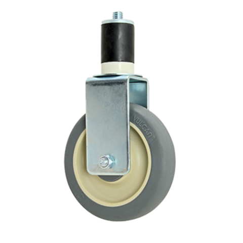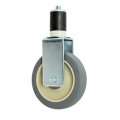 Caster, rigid stem, medium duty, 1-1/8"W, 5" dia., for 1-5/8" OD tubing, solid gray polyurethane wheel with metal hub